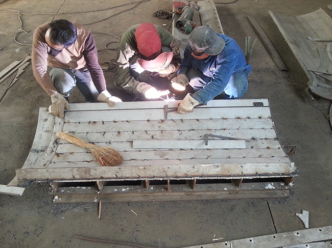 礦熱爐的大規(guī)模化是鐵合金工業(yè)發(fā)展的必然趨勢(shì),對(duì)其主要設(shè)備和關(guān)鍵部件的可靠性和使用壽命提出了更高的要求。銅冷卻部件作為大容量礦熱爐的關(guān)鍵設(shè)備,包括銅壓力環(huán)、銅保護(hù)屏、銅爐蓋等,在國(guó)外先進(jìn)的鐵合金企業(yè)中得到了廣泛的應(yīng)用。在業(yè)主、工程公司、設(shè)計(jì)單位和制造商的共同努力下,電極柱大多采用壓力環(huán)和銅瓦結(jié)構(gòu)取代傳統(tǒng)的組合控制器,壓力環(huán)使用壽命可達(dá)10年以上;針對(duì)電極三角區(qū)不銹鋼板組焊接爐蓋容易漏水的問題,借鑒國(guó)外先進(jìn)經(jīng)驗(yàn),采用銅板鉆孔焊接結(jié)構(gòu),確保爐蓋的使用壽命。本文詳細(xì)討論了大容量鐵合金礦熱爐關(guān)鍵銅冷卻部件的新開發(fā)和應(yīng)用。